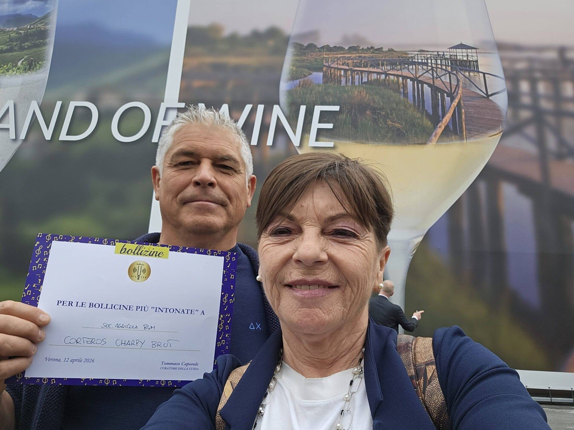 Il percorso di successi è proseguito nella prestigiosa cornice di Vinitaly, dove il Charpy Brut di Corteros ha ricevuto domenica il Bollino d’Oro alla quarta edizione del "Premio Diapason".
